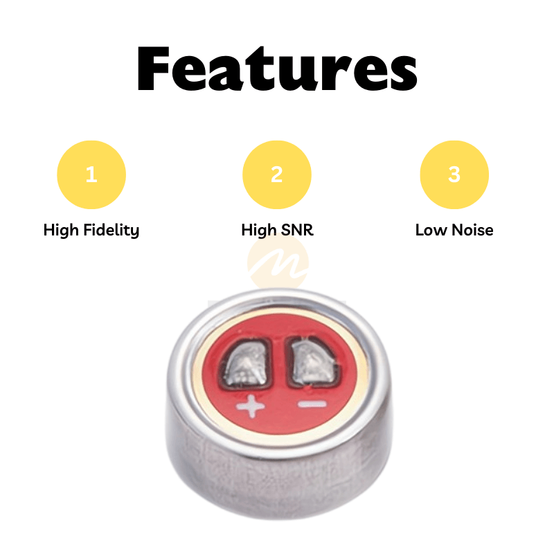 The capsule is built with excellent interference resistance, ensuring reliable performance in environments with electromagnetic interference (EMI), making it an ideal choice for wireless lavalier microphones. The microphone’s low self-noise and high sensitivity of -32dB guarantee optimal clarity in various recording and broadcasting setups, even in challenging conditions.