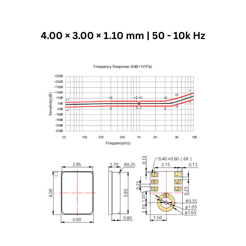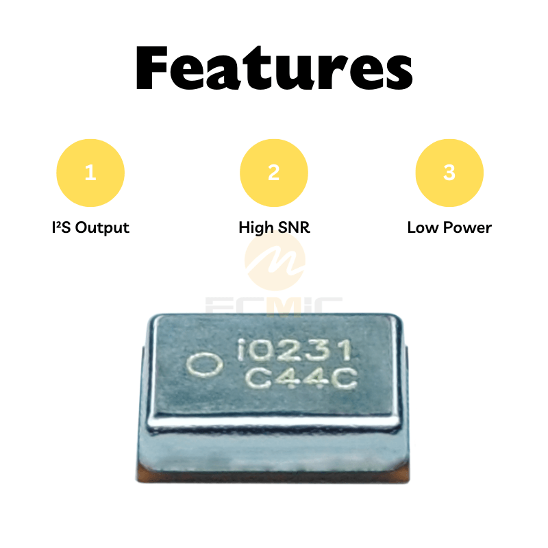 El ECM-M4030B261 es un micrófono MEMS de salida digital I²S de alto rendimiento con una relación señal-ruido (SNR) de 64 dB y una sensibilidad de -26 dBFS ±1 dB. Cuenta con un punto de sobrecarga acústica de 120 dB SPL, lo que garantiza una grabación sin distorsiones incluso en entornos con mucho ruido. El voltaje de funcionamiento oscila entre 1,65 V y 3,6 V, con un consumo de corriente típico de 750 μA. La interfaz I²S admite audio de 24 bits y simplifica la conexión directa a procesadores digitales. Con una tolerancia de sensibilidad de ±1 dB, permite crear conjuntos de micrófonos de alto rendimiento sin necesidad de calibrar el sistema.