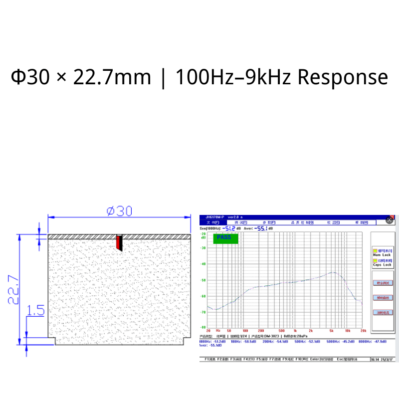 이 캡슐은 100Hz에서 9kHz에 이르는 주파수 응답(응답 곡선 참조), 표준 450Ω 임피던스, -51dB 감도를 제공합니다. 추가 임피던스 옵션(400Ω, 500Ω, 600Ω)을 통해 다양한 마이크 시스템에 원활하게 통합할 수 있습니다. 신뢰성을 위해 설계된 이 캡슐은 우수한 피드백 저항성을 유지하면서 정밀한 수음 성능을 제공합니다.